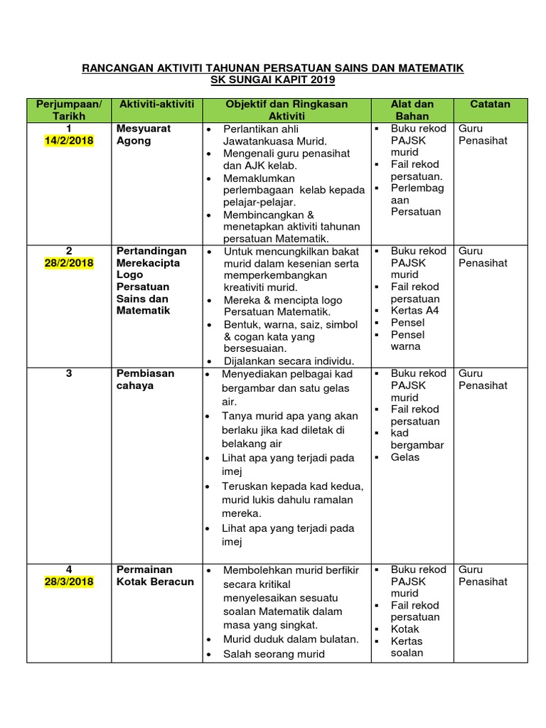 Rancangan Aktiviti Tahunan Persatuan Sains Dan Matematik 2019 Pdf